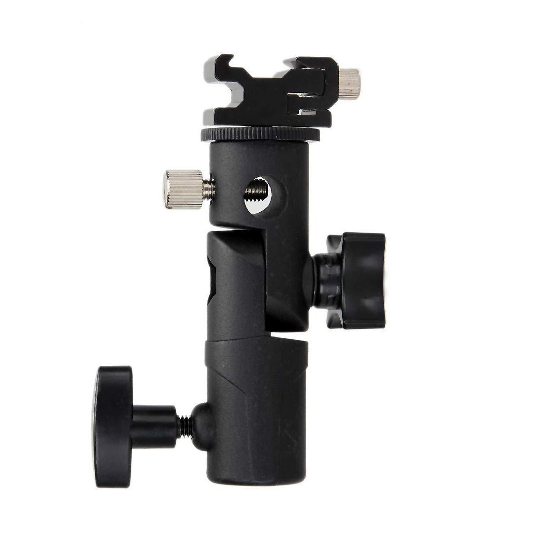 Robuster, kompakter und vielseitiger Studio Blitz- und Schirmhalter Typ E - Schirmneiger für Studiostative. 1/4", 3/8" und Spigot Anschlüsse. Perfekter Halt für Blitz und Schirm.