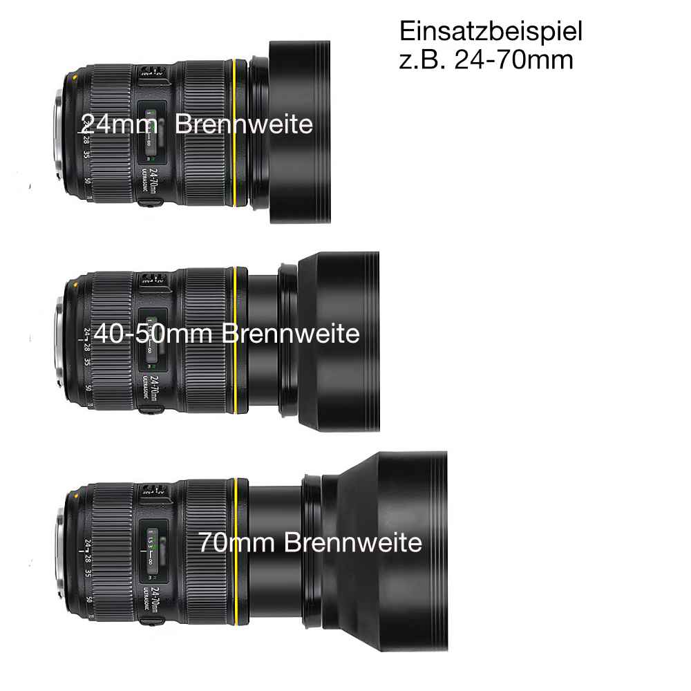 3-Stufen Gummi-Gegenlichtblende für Objektive mit 62mm Filterdurchmesser