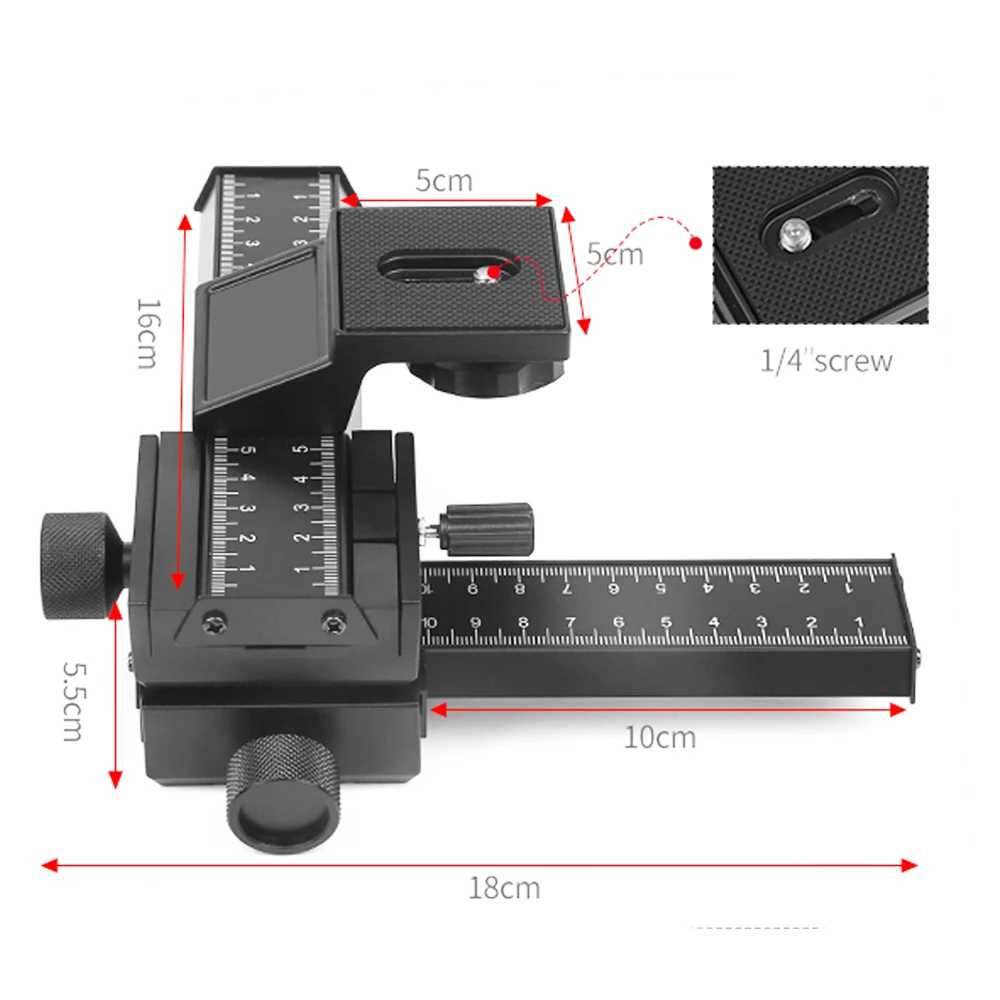 - Technische Daten: Makroschlitten aus Metall und Kunststoff