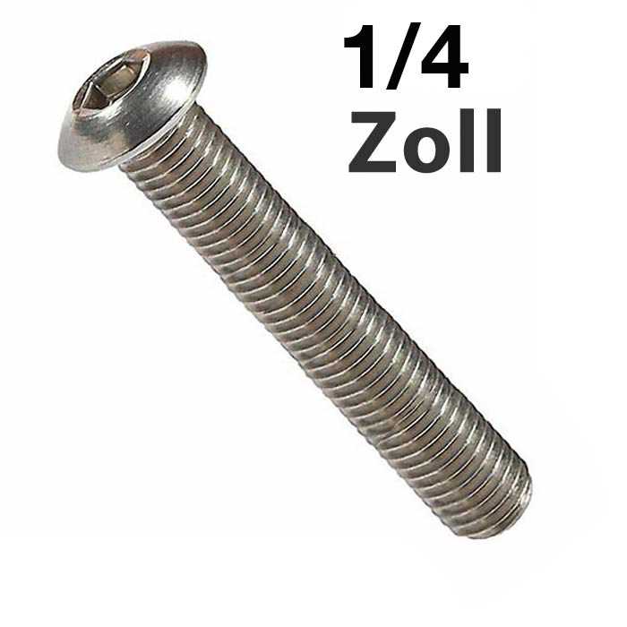 Schraube Rundkopf 1/4 Zoll UNC 14mm Gewinde Chromstahl A3 Innensechskant