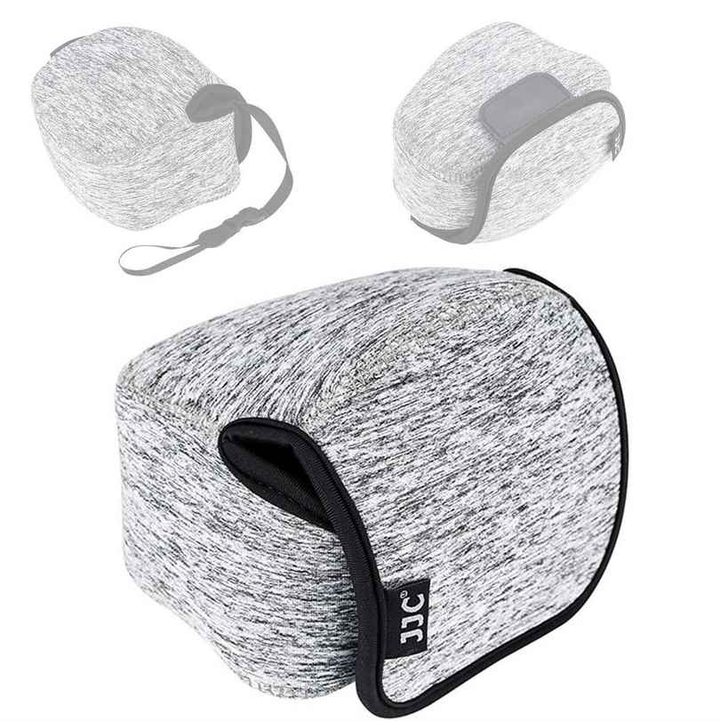 Neopren Kameratasche JJC OC-Z1BG, grau. Weiches Neopren Material schützt die Kamera wirkungsvoll. Passend z.B. zu Canon R50 mit 18-45mm od. 50mm, Nikon Z50 mit 16-50mm, Fujifilm XS-10 mit 15-45mm, Fujifilm X-E1, X-E3, EX-4 mit 18mm Objkektiv.