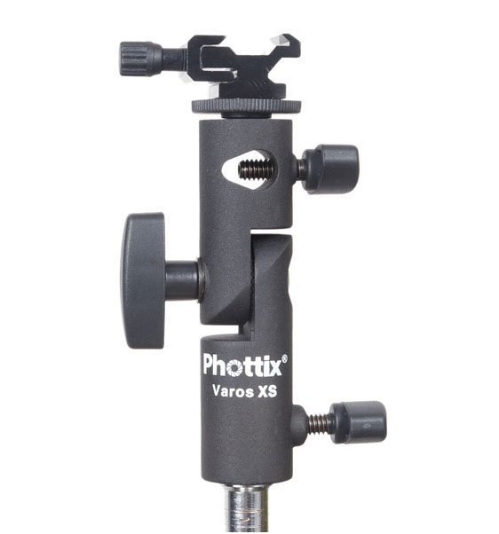 er Blitz- Schirmhalter Varos XS ist der leichteste professionelle Halter der Varos Familie. Er ist sehr variable, stabil und bei Vor-Ort-Fotografen und Journalisten sehr beliebt. Die Varos XS verfügt über ein ¼ "-Gewinde und eine Blitzschuh-Halterung auf der Oberseite und einem Standard-5 / 8"-Anschluss auf der Unterseite, sowie ein ¼ "und 3 / 8"-Gewindeeinsatz (weiblich).