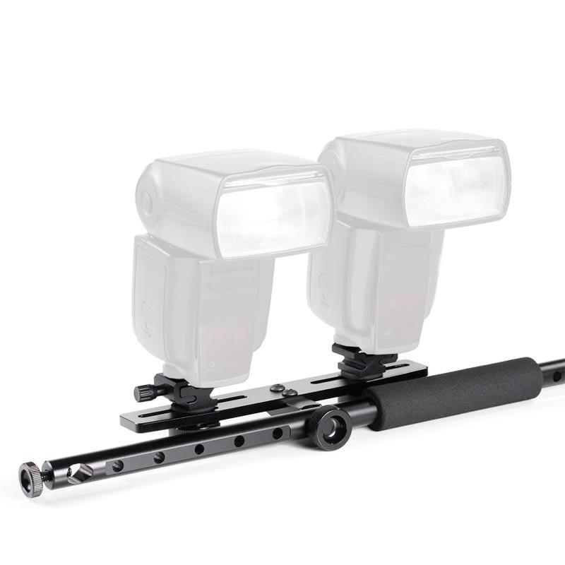 - 2x Cold Shoe zur Befestigung von 2 Blitzgeräten oder ähnlichem.