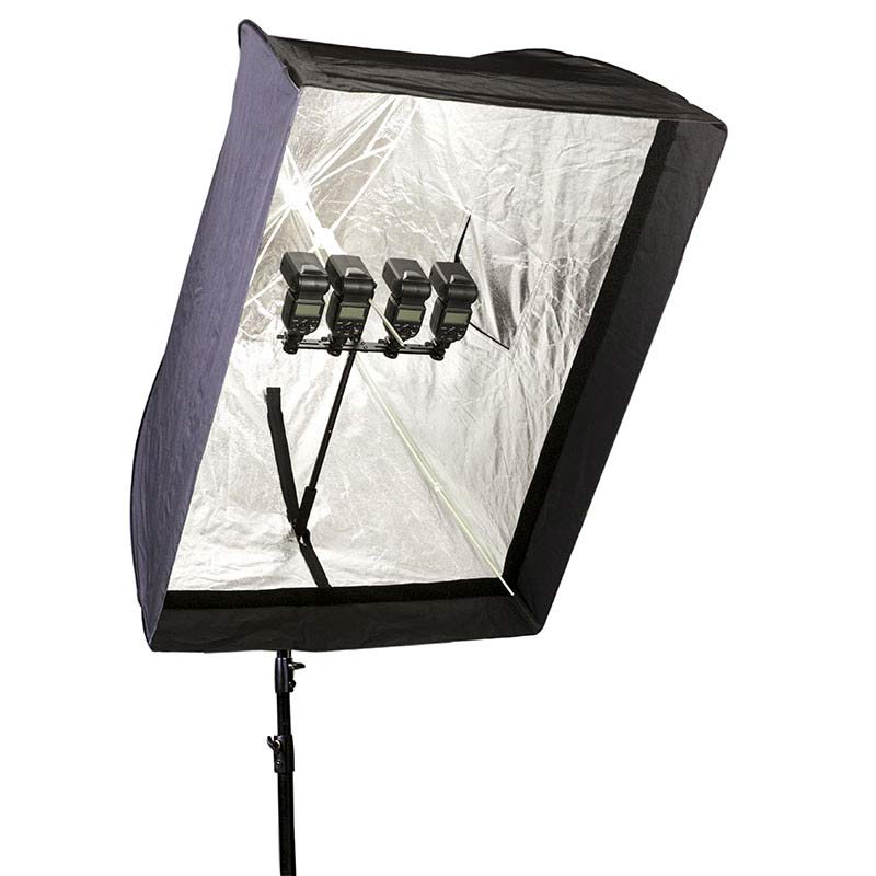 • Halterungen für bis zu 4 Blitzgeräte (NICHT Sony/Minolta System)