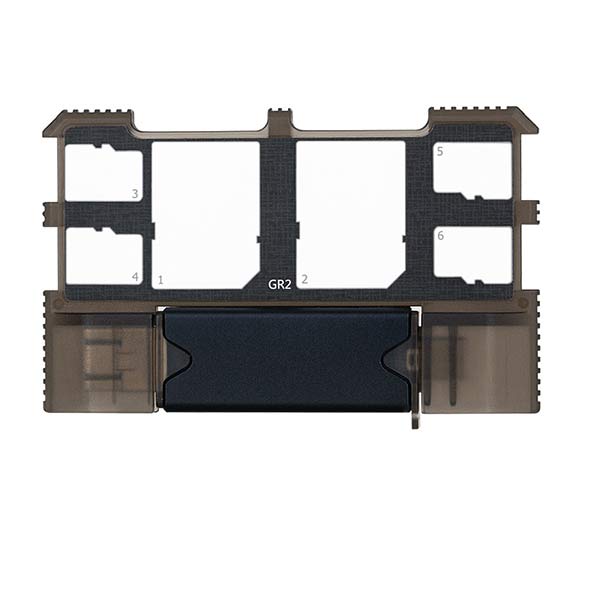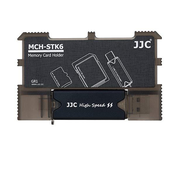 Der Speicherkartenhalter JJC MCH-STK6GR kann 2 SD-Karten, 4 MSD-Karten und 1 USB 3.0-Kartenleser aufnehmen. Der Halter kann Karten effektiv vor Staub und Verlust schützen und Ihre verstreuten Karten können sicher verstaut werden. Die Schnapp-Verbindungen in den Kartenfächern sichern Ihre Karten vor dem Herausfallen. Der Halter ist einfach zu bedienen und kann für die Speicherkartenmuster auf der Rückseite markiert werden.