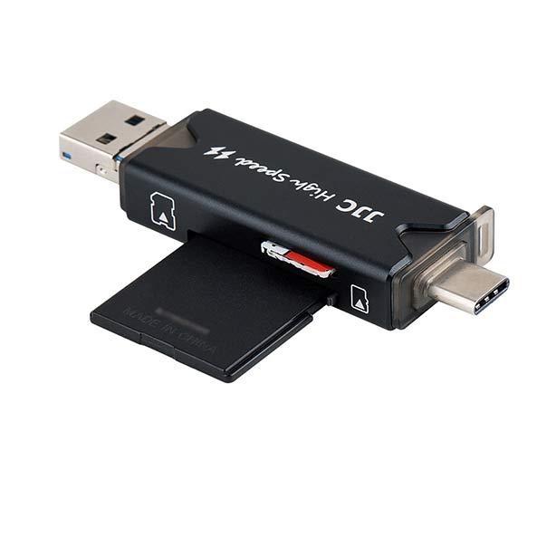 Ein USB 3.0-Hochgeschwindigkeitskartenleser mit 3 Anschlüssen ist inbegriffen: USB 3.0, Micro USB 2.0 und Typ C USB 3.0. Plug-and-Play-Design, keine Treiber erforderlich. Es kann gleichzeitig auf SD- und MSD-Karten zugreifen.